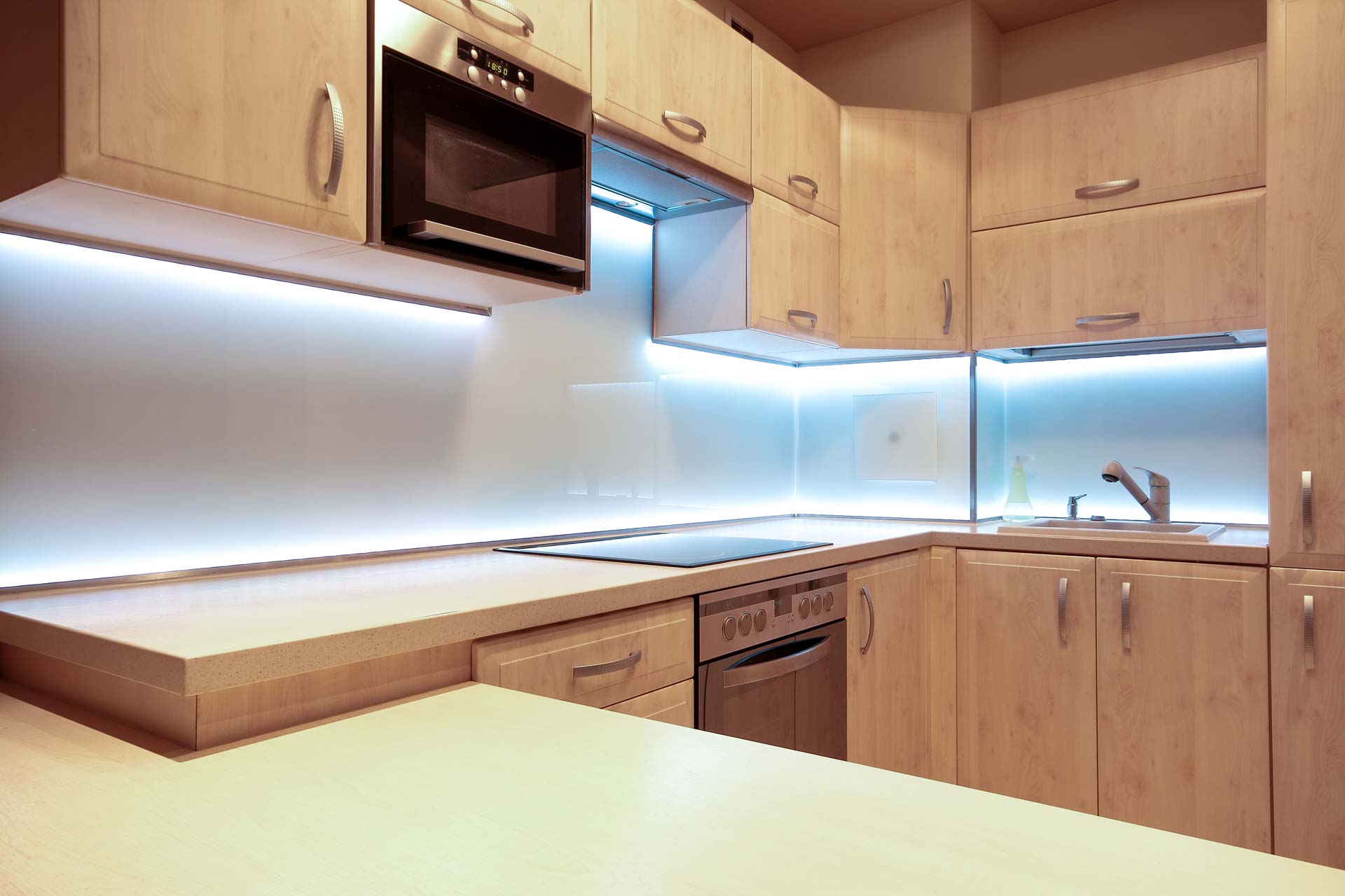 Ob beleuchten, hinterleuchten, indirekt Beleuchten oder mit Farben Akzente zu setzen, die Möglichkeiten sind vielfältig und interessant. Mit der richtigen Beleuchtung können Sie für allerlei Stimmung sorgen. Wir beraten Sie gerne bei Ihren Wünschen und Vorstellungen.